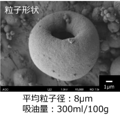 ・高い疎水性:特に撥水性が非常に高く、ルースパウダー処方での評価では樹脂ビーズと同等以上の撥水性を示しています。