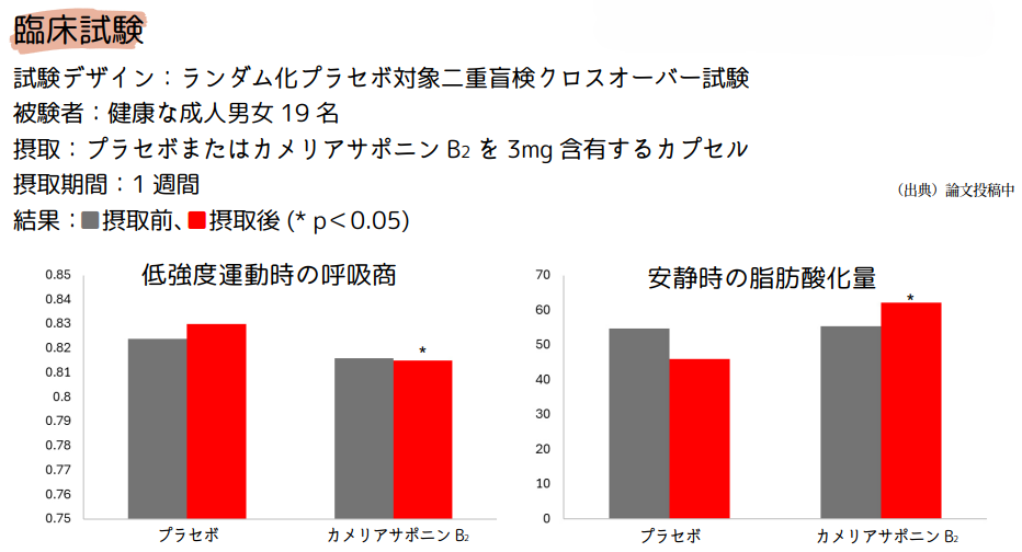 脂肪燃焼訴求を含むのヘルスクレーム内容での届出を準備しております。